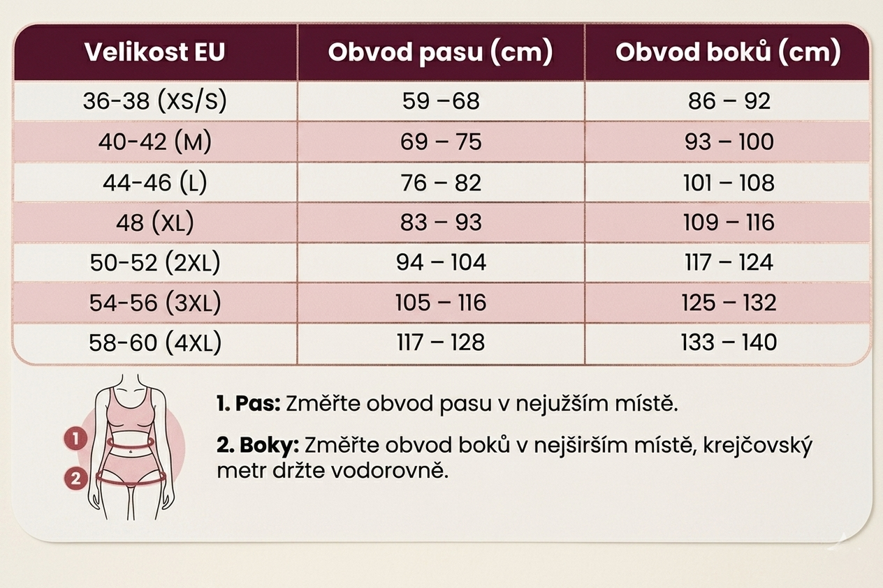 💡 Tip: Zvolte větší velikost, pokud máte svalnatější stehna nebo preferujete větší pohodlí.